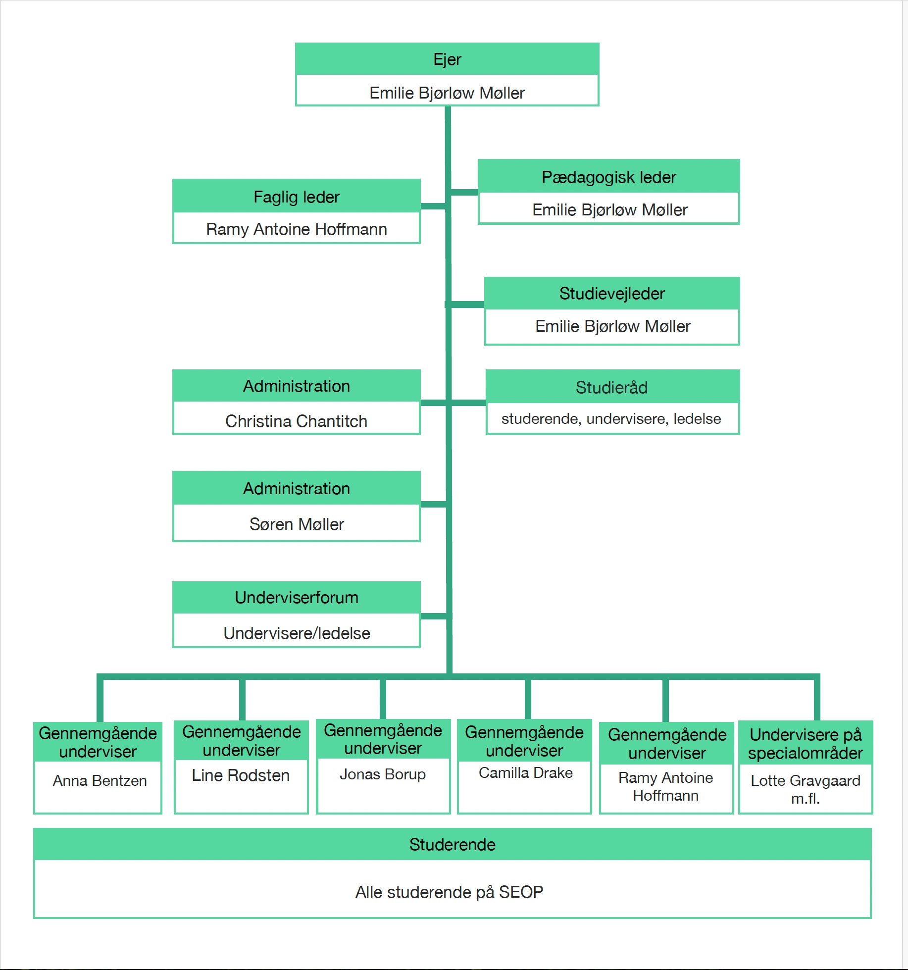 Emilie er ejer og grundlægger af SEOP samt pædagogisk leder. Desuden fungerer Emilie som underviser og studievejleder. Det er Emilie der er hovedansvarlig for uddannelsen. Som pædagogisk leder, er det Emilie, der tager sig af de studerendes eventuelle udfordringer undervejs i uddannelsen og for hvordan undervisningens pædagogiske aspekter udfoldes. Derudover er Emilie overordnet ansvarlig for administration og økonomi på SEOP.